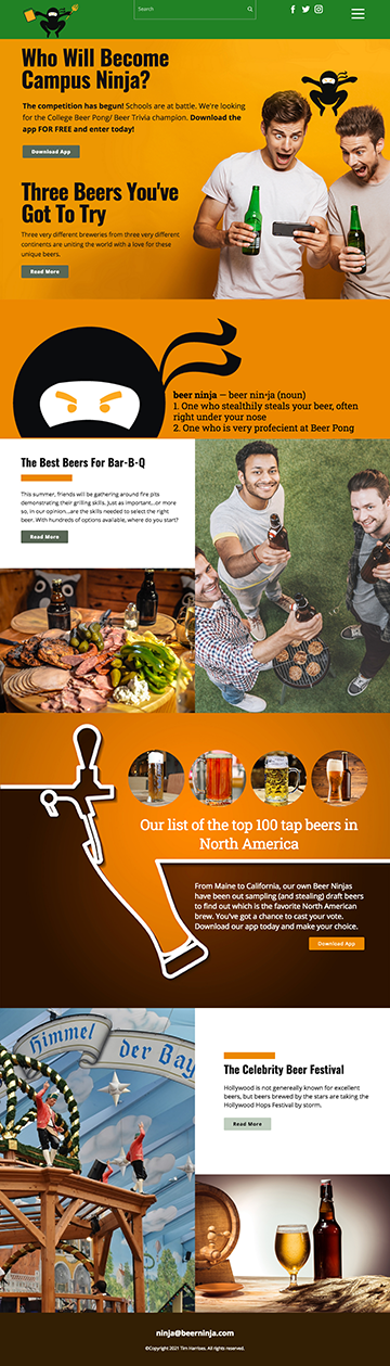 Suggested Content: A great domain name for a site featuring information on various craft beers and breweries. Sponsor Beer Ninja campus and national beer pong competitions. Feature news, events, recipes, gear and brewing kits