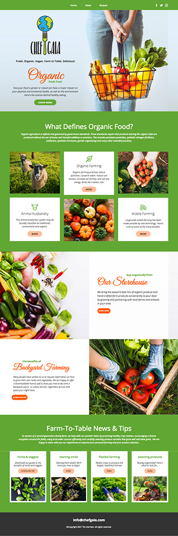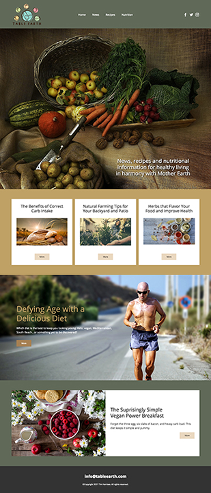 Suggested Content: A great domain for a site featuring healthy eating in conjunction with nature. Include news, recipes, interviews with chefs, a podcast, cooking classes, culinary events and more.